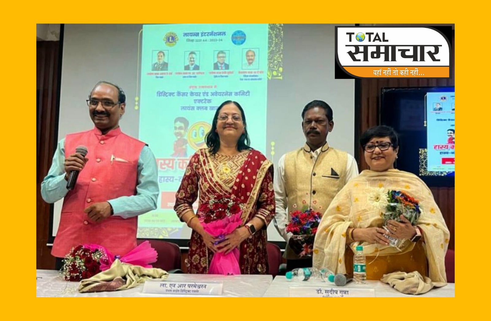 नवी मुंबई : टाटा मेमोरियल कैंसर अस्पताल और लायंस क्लब खारघर के तत्वावधान में कैंसर पीड़ितों के लिए एक हास्य कवि सम्मेलन का आयोजन किया गया। हास्य शिरोमणि सुरेश मिश्र के सफल संचालन में सुश्री मधुश्रृंगी, मनोज मद्रासी (अमरावती) , भगवान दास प्रजापति व सुश्री कनकलता तिवारी सहित अन्य कवियों ने श्रोताओं को अपनी गुगुदाती रचनाएं प्रस्तुत कर हंसा हंसाकर लोटपोट कर दिया।
