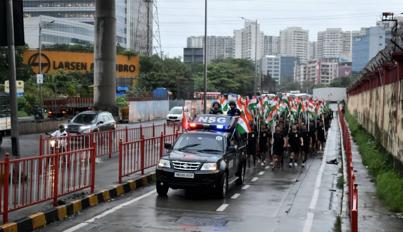 पवई ( मुंबई ) : आजादी का अमृत महोत्सव पर्व मनाने के साथ साथ नागरिकों में देशप्रेम और नव चेतना के संचार की मंशा से एनएसजी, 26 एससीजी के ब्लैक कैट कमांडोज़ द्वारा वॉकाथॉन और कमांडोज़ बाइक रैली का आयोजन मुंबई के पवई इलाके में किया गया।