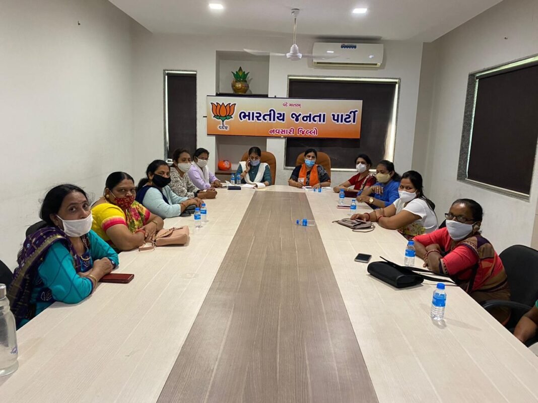 डांग विधानसभा उपचुनाव के मद्देनजर भाजपा महिला मोर्चा की बैठक महिला मोर्चा की प्रदेश महामंत्री व दक्षिण गुजरात प्रभारी हेमाली बोघावाला की देखरेख में बुलाई, बैठक में सौंपी जिम्मेदारी