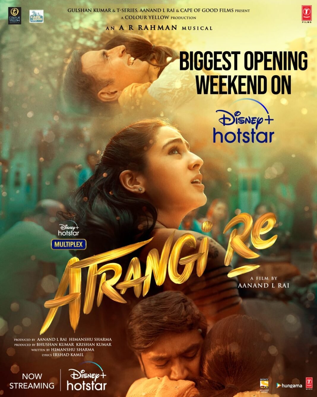 अतरंगी रे के रिकॉर्ड-तोड़ नंबरों के बारे में बात करते हुए, गौरव बनर्जी, हेड, कंटेंट डिज़नी + हॉटस्टार और एचएसएम एंटरटेनमेंट नेटवर्क, डिज़नी स्टार इंडिया ने कहा कि , “हम डिज़नी + हॉटस्टार पर लगातार अपने दर्शकों को अलग-अलग कंटेंट से परिचित कराने की कोशिश कर रहे हैं। अतरंगी रे प्यार की एक अनसुनी कहानी है और यह हमारे रोस्टर पर बिल्कुल फिट बैठती है। हम यह सुनकर रोमांचित हैं कि दर्शक फिल्म का आनंद ले रहे हैं और यह कि फिल्म दर्शकों की संख्या बढ़ा रही है। हम उम्मीद करते हैं कि इस तरह के और कंटेंट के साथ हम अपने दर्शकों का मनोरंजन करते रहेंगे।”