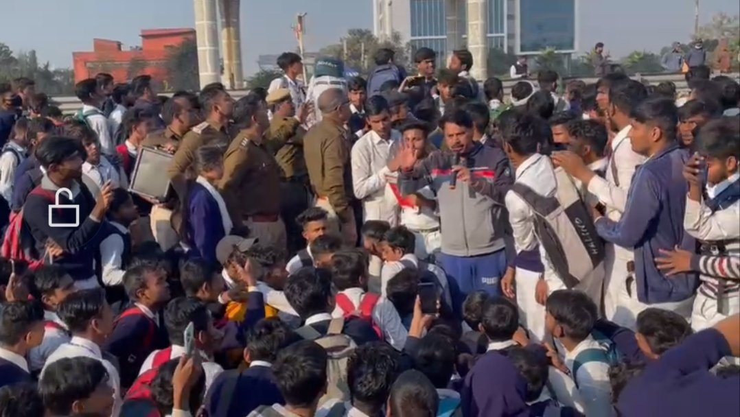 3 महीने से स्कूल मैं टीचरों की कमी के चलते आज सराय के सरकारी स्कूल के छात्र-छात्राओं का गुस्सा फूट पड़ा और उन्होंने स्कूल के गेट को ताला लगाते हुए नेशनल हाईवे नंबर 19 को जाम कर दिया। बच्चों द्वारा नेशनल हाईवे को जाम लगाने के बाद हड़कंप मच गया स्कूली बच्चे टीचर की मांग कर रहे थे । लगभग डेढ़ से दो घंटे तक जाम रहा जिससे आने जाने वालों को तमाम परेशानियों का सामना करना पड़ा ।