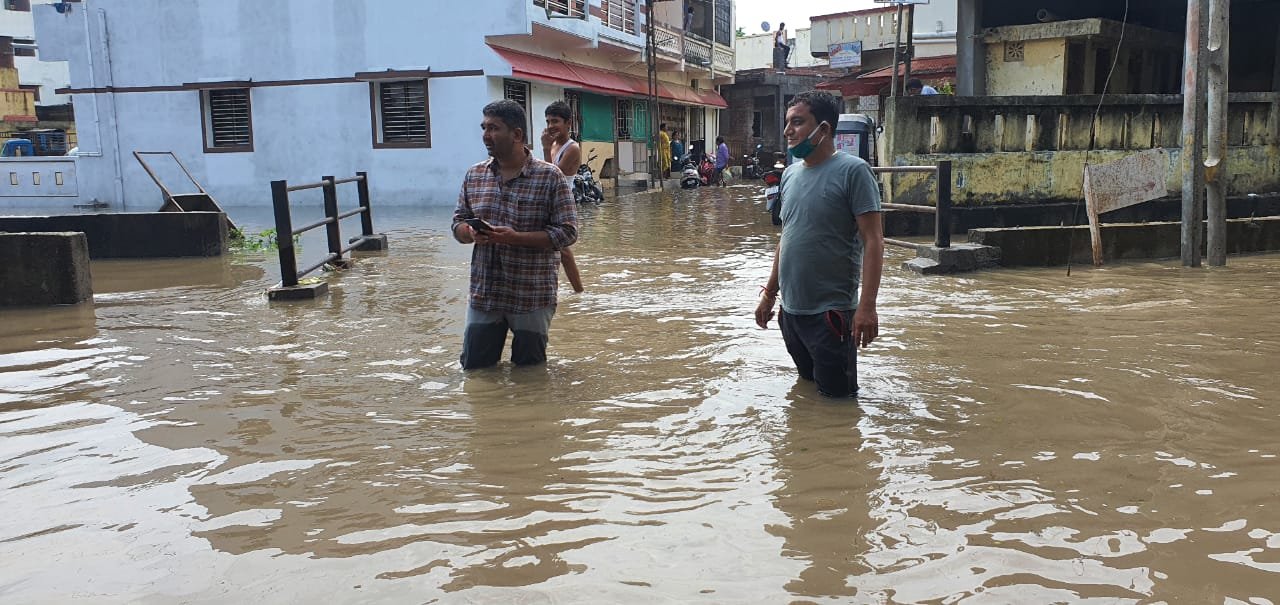 गुजरात का कच्छ इलाका भी सैलाब का सितम झेल रहा है. करीब 45 दिन से हो रही बारिश से तमाम छोटी बड़ी नदियां उफान पर हैं. जिसका असर लाखों लोगों की जिंदगी पर पड़ा है. यहां मकान, दुकान और खेत खलिहान सब बाढ़ की चपेट में हैं. समूचे गुजरात की बात करे तो कई नदियां ऊफान पर हैं अलग अलग जिलों में 1900 लोगों को सुरक्षित स्थानों पर पहुंचाया गया है. . राज्य में मंगलवार यानी आज भी भारी बारिश की चेतावनी के बिच कई इलाको में कल रात से बारिश नहीं हुई है मगर उनकी मुसीबते जस की तस बनी हुई है क्यूंकि दो दिनों की मुश्लाधर बारिश से जमा पानी निकल नहीं रहा और लोग मजबूरन पानी में फसे हुए है।