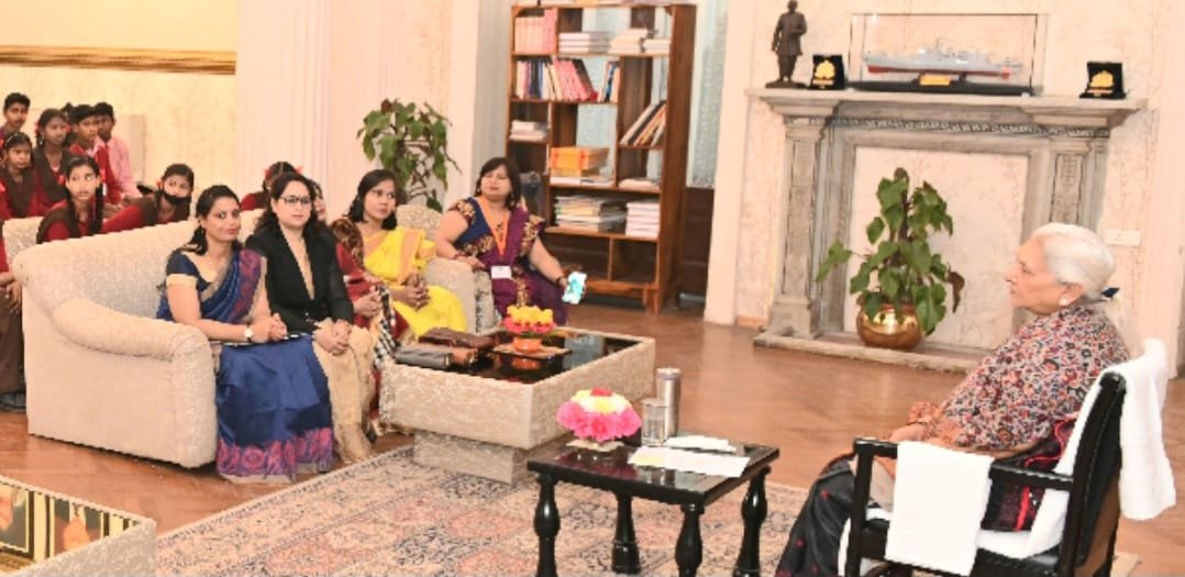 आनंदीबेन पटेल से राजभवन में उत्तर प्रदेश महिला शिक्षक संघ की प्रदेश अध्यक्ष सुलोचना मौर्य के नेतृत्व में जनपद बाराबंकी के पांच सरकारी स्कूलों के कक्षा एक से आठ तक के विद्यार्थी और अध्यापक मिलने पहुँचे थे.