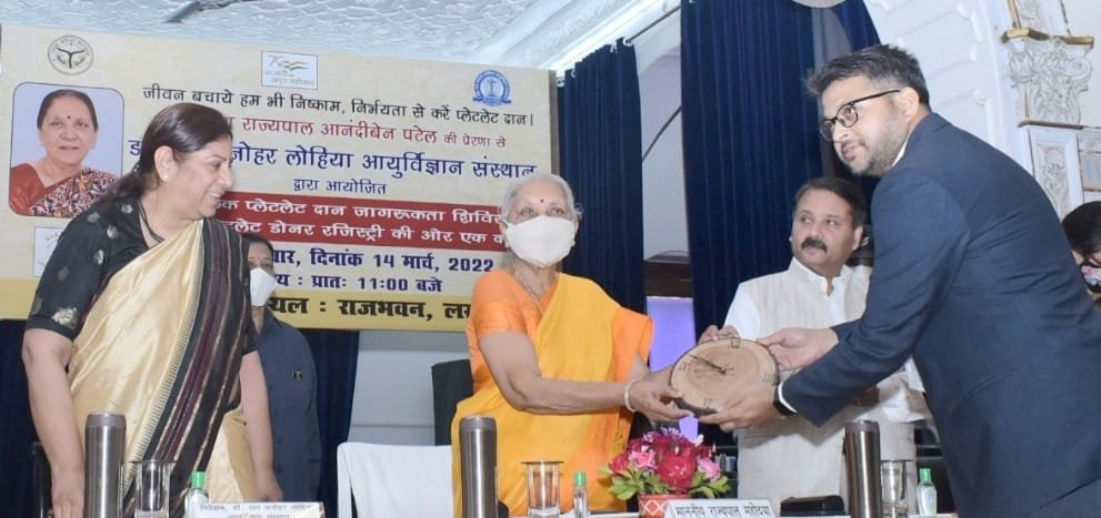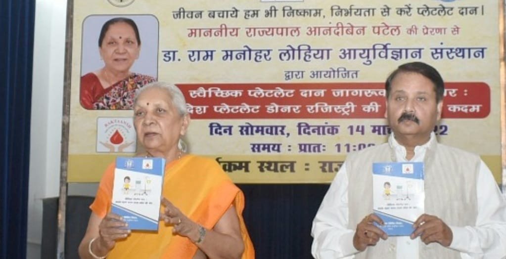 आनंदीबेन पटेल राजभवन स्थित गांधी सभागार में डा राम मनोहर लोहिया आयुर्विज्ञान संस्थान, लखनऊ द्वारा आयोजित स्वैच्छिक प्लेटलेट दान जागरूकता शिविर का उद्घाटन किया। इस अवसर पर उन्होंने कहा कि खून देकर किसी की जिन्दगी बचाना सबसे महान काम है। दुनिया का कोई वैज्ञानिक ईश्वर प्रदत्त रक्त नहीं बना सकता है। जरूरत पड़ने पर एक इंसान का खून ही किसी दूसरे की जिन्दगी बचा सकता है। उन्होंने कहा कि रक्तदान एकदम सुरक्षित प्रक्रिया है, एक औसत वयस्क रक्तदान के बाद चौबीस से अड़तालीस घंटों में फिर से रक्त बना लेता है। एक स्वस्थ व्यक्ति वर्ष में चौबीस बार तक प्लेटलेट्स दान कर सकता है। यदि प्रदेश की दस प्रतिशत जनता भी इस अभियान से जुड़ जाये तो हम इस क्षेत्र में देश में नम्बर बन स्तर पर होंगे। राज्यपाल ने अंगदान व क्षय रोग निवारण अभियान का भी उल्लेख किया। कहा कि इस माध्यम से भी जरूरतमंदों की बड़ी सेवा की जा सकती है। उन्होंने प्रत्येक वर्ष चौबीस मार्च को विश्व क्षय रोग दिवस के संबन्ध में ध्यान आकर्षित किया। कहा कि हमारा देश वर्ष 2025 तक क्षय रोग से मुक्त भारत के निर्माण के लिए संकल्पित है। इसके प्रति भी जागरूक रहने की आवश्यकता है।