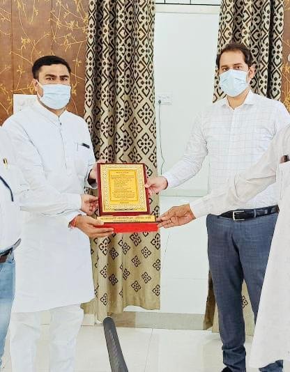समाजसेवी डा० आदित्य कुमार त्यागी जी आज ज़िलाधिकारी जनपद हापुड़ श्री अनुज सिंह से पीड़ित परिवार को आर्थिक मद्दत दिलाने को लेकर मिले और इस कोरोनाकाल में उनके बेहतर प्रशासन व उत्तम स्वास्थ्य सुरक्षा कार्य की प्रशंसा करते हुए उन्हें उपहारस्वरूप संविधान की प्रस्तावना भेंट स्वरूप प्रदान की |