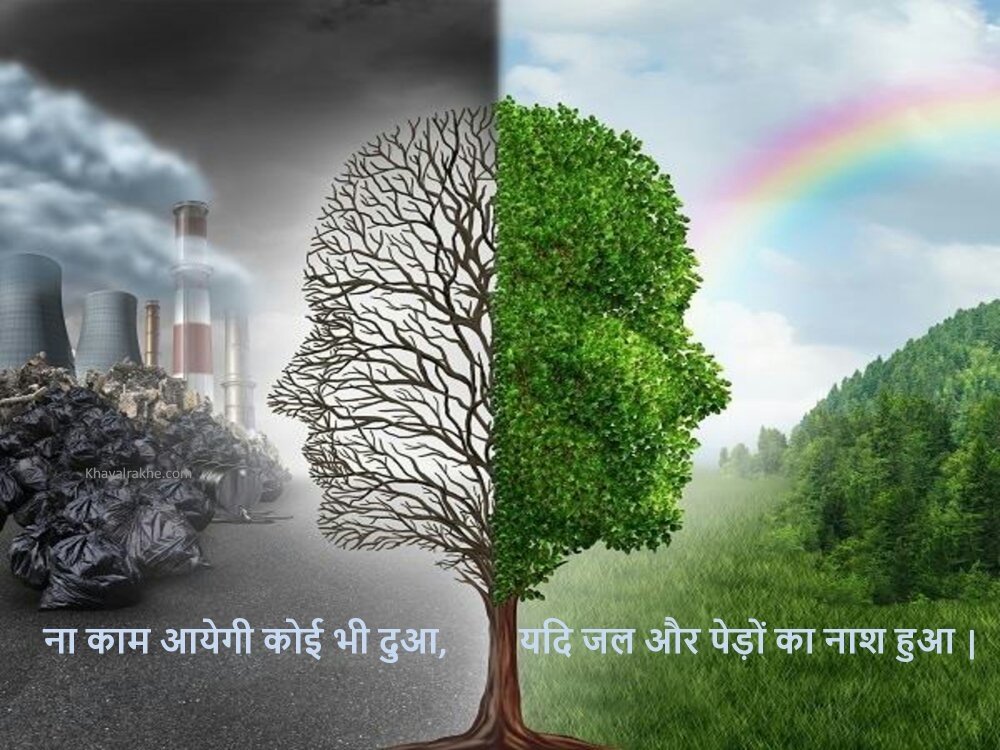 पर्यावरण का तात्पर्य सिर्फ वृक्षारोपण नहीं लगाया जाना चाहिए एक व्यक्ति के शरीर में 70 प्रतिशत जल होता है और जब जल ही प्रदूषित होता चला जाएगा तो उस प्रदूषित जल के माध्यम से यदि हम अपने को जीवित रखना चाहेंगे तो शरीर के अंदर 70% जल के सापेक्ष करीब 70% बीमारियां भी शरीर को घेर लेंगी जिसे आज प्रत्येक व्यक्ति की बीमारी में महसूस किया जा सकता है| कोरोना काल में ऑक्सीजन की समस्या और लोगों द्वारा ऑक्सीजन लेने में परेशानी का अनुभव यह बताता है कि वातावरण में हमने स्वयं पेड़ पौधों का दोहन करके ऑक्सीजन के संतुलन को भी बिगाड़ा है| इसलिए पेड़ पौधे लगाना पर्यावरण की संपूर्णता में सिर्फ 33 प्रतिशत भाग है| शेष 33% में जल की शुद्धता है और 33% पृथ्वी या जमीन की उर्वरता और उसके पोषक तत्वों के निर्माण को बनाए रखने का प्रयास है जो हम समझ नहीं पा रहे हैं या जनसंख्या के विकराल स्वरूप के आगे हमारे सामने सिर्फ यही विकल्प शेष रह गया है कि हम जमीनों को उर्वरकों के माध्यम से नष्ट कर डालें ! रहने के उद्देश्यों की पूर्ति के लिए जंगल काट डाले!
